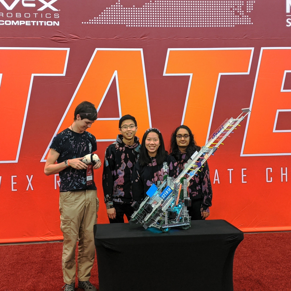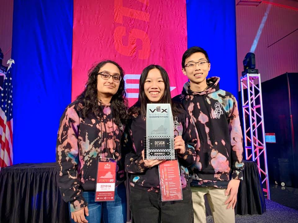 22101A is going to the VEX World Championship! The VEX Virginia State Championship was 22101's longest and most tiring, but definitely more rewarding, competition to date. Both Teams 22101A and 22101Z were able to attend the VEX Virginia State Championship this past weekend through awards and skills rankings. After 8 difficult qualification matches each, one of which was against one another (22101A came out victorious), 22101A stood in 11th place and 22101Z in 27th. Unfortunately, only 22101A made it to the elimination matches, pairing up with Team 1575M to form the 8th seed. They battled it out through a 2v1 match in the Round of 16, 22101A against 2145Z and 46F, getting through to the quarterfinals because of the disqualification of the opposing alliance. Victory was cut short in the quarterfinals after a hard-fought battle against 4303C and 80508X. 22101A just barely missed qualifying for Worlds through the quarterfinals qualification by 9 points! Luckily, the day wasn't over yet, and 22101A's engineering notebook came through, winning them the Design Award. Worlds here we come!